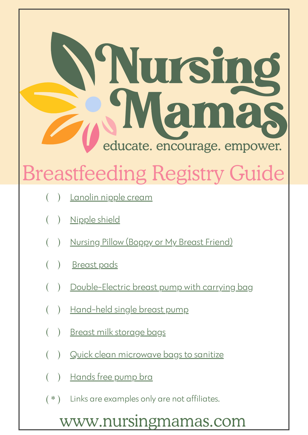 When you attend the session you will also receive, The Complete Breastfeeding Registry Guide, with all you need to be prepared when you bring baby home. Everyone loves a cute onsie, but these are the things that will increase your breastfeeding confidence and reduce the risk late night Amazon orders once you are home (I may have done a dozen or so of these as a first time mom!).